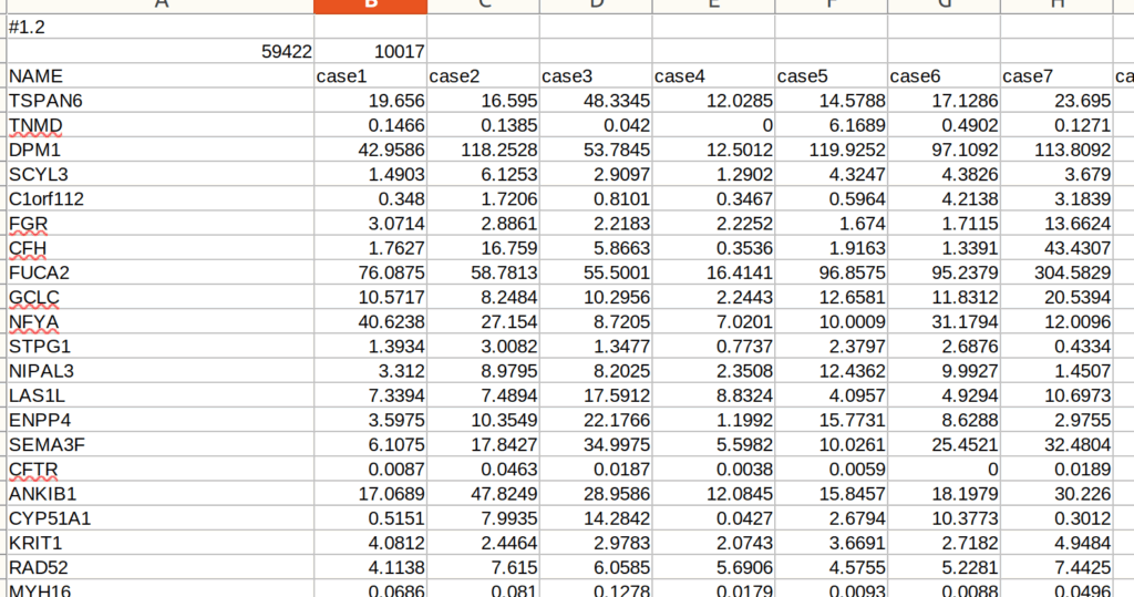データセットは、TCGAからダウンロードした遺伝子発現プロファイルでる。これを各疾患の生存率に与える影響を解析するために整形したデータである。これは、このときにダウンロードしたデータである(gdc-clientを使ってTCGAの公開データをダウンロードする)。以下のような感じになっている。この遺伝子発現プロファイルを全部結合して、各患者xTPMで正規化された各遺伝子発現量(10017例 x59422遺伝子)のデータフレームもしくはマトリックスである。この作成方法については別にポストしようと思う。ここでは、このデータセットをfgseaとssGSEA2に入れて、ちゃんと並列化して計算できるかどうか調整、テストしようと思う。