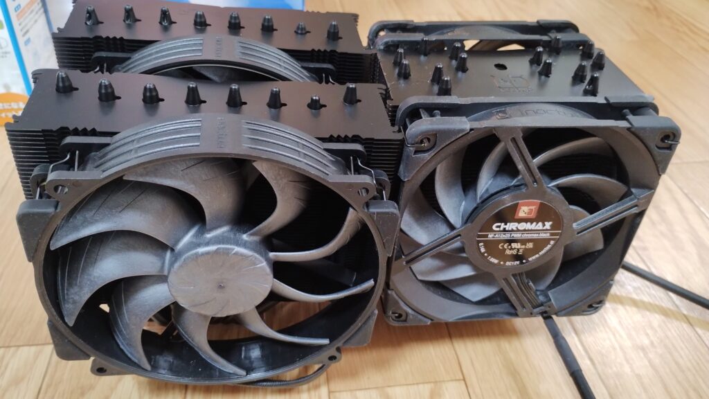 これは、現在使っている自作PCを組んだときに、ChatGPTにおすすめされた静音タイプのCPUクーラーだったと思う。このクーラーは、おそらく非常に静かなことが特徴な、めちゃくちゃ良いCPUクーラーである。正直、変える必要なんかないような気がしていた。このコンピューターの用途はバイオインフォマティクスである。以前の記事を見ればなんとなくわかるが、1週間以上もCPUを全回転させるときがあり、そのときのCPUの温度は90度を超えてしまう。こんな使い方は、CPUの健康状態にとって良いわけがない。それに、昨今の半導体Gougingにより、メモリだのなんだのの価格が高騰している。もしここでこのコンピューターが壊れてしまったら、そのダメージたるや計り知れない。もはや5年くらいは買うことが出来ないのではないかと本気で思っている。だから、コンピューターを酷使しながらも、出来る限りその負荷を軽減しなくてはならないと本気で思っている。それに、このコンピューターの稼働が始まってからすでに1年以上経過している。そろそろ掃除しなければならない。だから、良い機会だからCPUクーラーも新調したというところである。