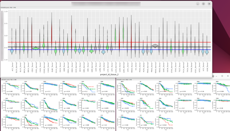2026/01/03(土);初稿 はじめに 以前、TCGAのデータを使って、がんや腫瘍における遺伝子発現量(RNA-seqのカウント値)と患者の生存率の関係をRで解析したが、そのときは対応する正常組織(おそらくがんや腫瘍周辺の正常部位)におけるRNA-seqのカウン値をダウンロードしなかったため、それらをバイオリンプロットを用いた疾患毎の遺伝子発現量もしくは遺伝子セットのエンリッチメントスコアの比 […]